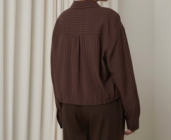 Chemise à col classique avec fermeture boutonnée sur le devant. Manches longues et poignets boutonnés. Détails de deux poches plaquées sur la poitrine. Bas ajustable avec lien à nouer.