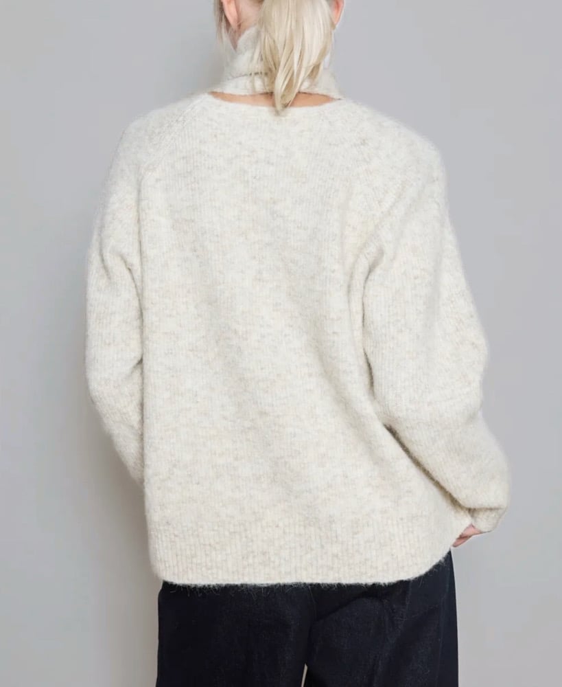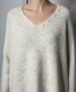 Pull à manches longues en maille douce. Echarpe cravate à nouer à l’avant. Coupe droite légèrement ajustée au niveau de la taille. Finitions côtelées à l’encolure, aux poignets et à la base.